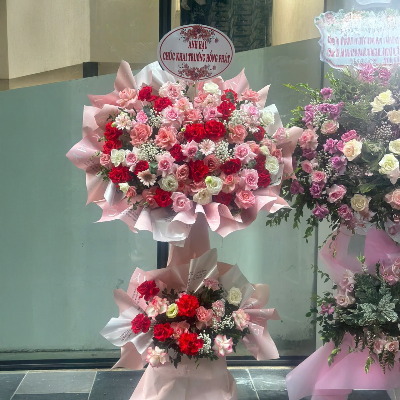 Phù hợp cho các dịp khai trương, chúc mừng công việc mới, sự kiện quan trọng, kệ hoa mang đến lời chúc may mắn và thành công bền vững.